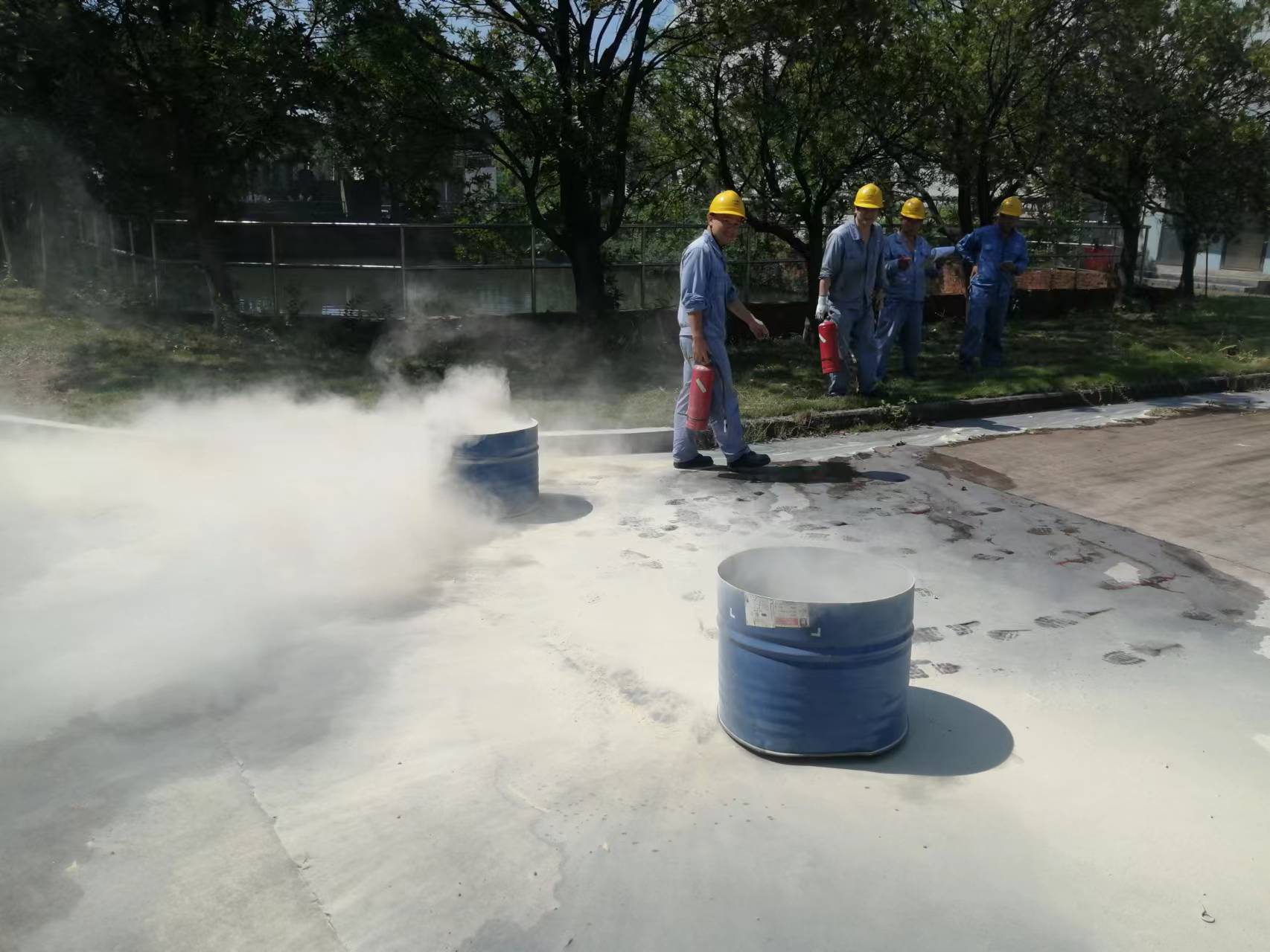 2、灭火器灭火比赛。每一个人一组,队员从指定地点跑到灭火区向灭火桶内喷射灭火剂喷完灭火剂计时结束。以时间从短到长进行排名。
