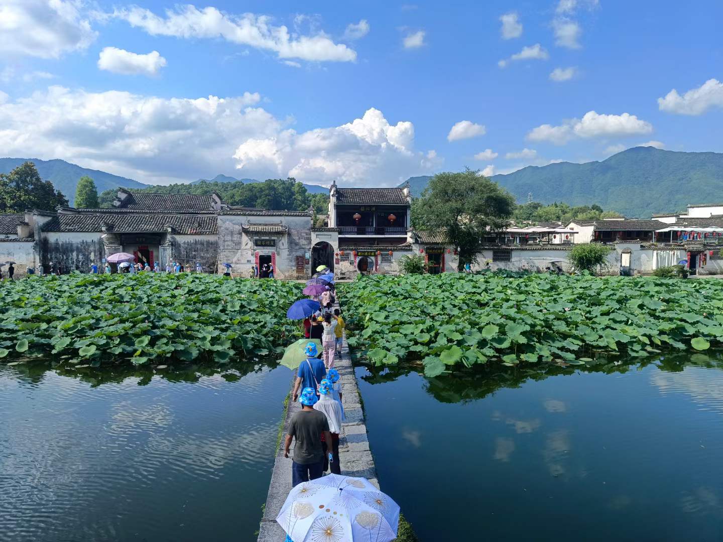 宏村,一座以徽派建筑为特色的村落,始建于南宋,位于黟县城西北角,距今已近千年历史,为汪姓聚居之地,因奥斯卡获奖电影《卧虎藏龙》而闻名中外,整个村落占地30公顷,枕雷岗面南湖,山水明秀,被誉为“中国画里的乡村”。因空中俯视角度犹如一只大水牛横卧在田野之中,又称牛形村