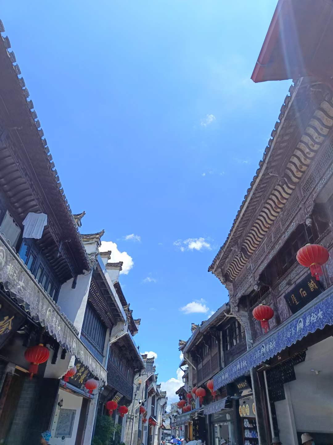经过3个多小时的车程,我们首先来到的是屯溪老街。屯溪老街座落在安徽省黄山市屯溪区中心地段,北面依山,南面傍水,全长1272米,由不同年代建成的300余幢徽派建筑构成的整个街巷,呈鱼骨架形分布,西部狭窄、东部较宽。因屯溪老街坐落在横江、率水和新安江三江汇流之处,所以又被称为流动的"清明上河图",是中国保存最完整、最具有南宋和明清建筑风格的古代街市,也是中国"全国重点文物保护单位"。